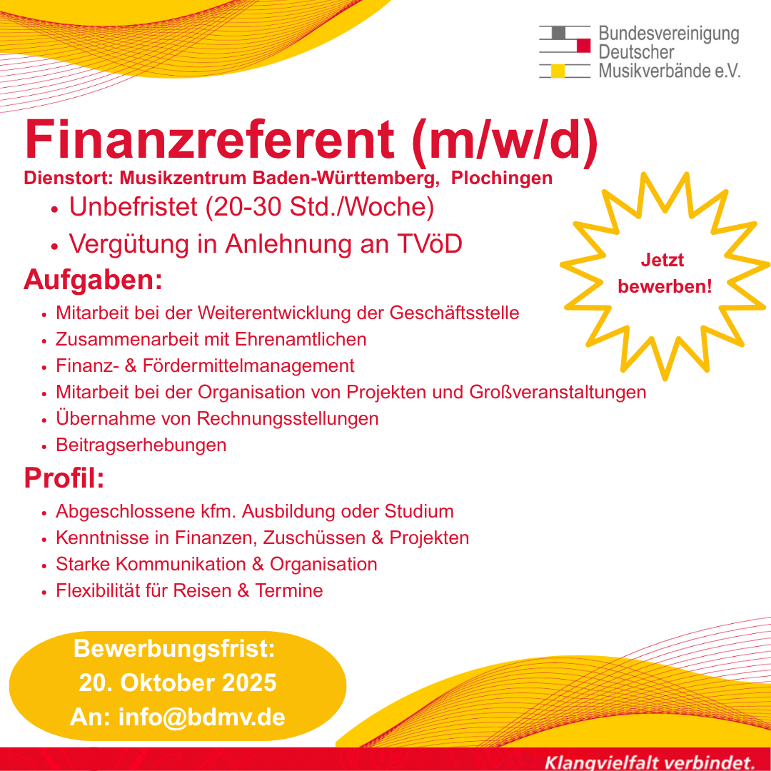 Zum 31. Januar 2026 wird Dr. Anita Huhn ihre Tätigkeit als Geschäftsführerin der Bundesvereinigung Deutscher Musikverbände e.V. beenden. Ab 1. Februar 2026 übernimmt sie die Leitung des neu geschaffenen Amts für Kunst und Kultur der Stadt Friedrichshafen.